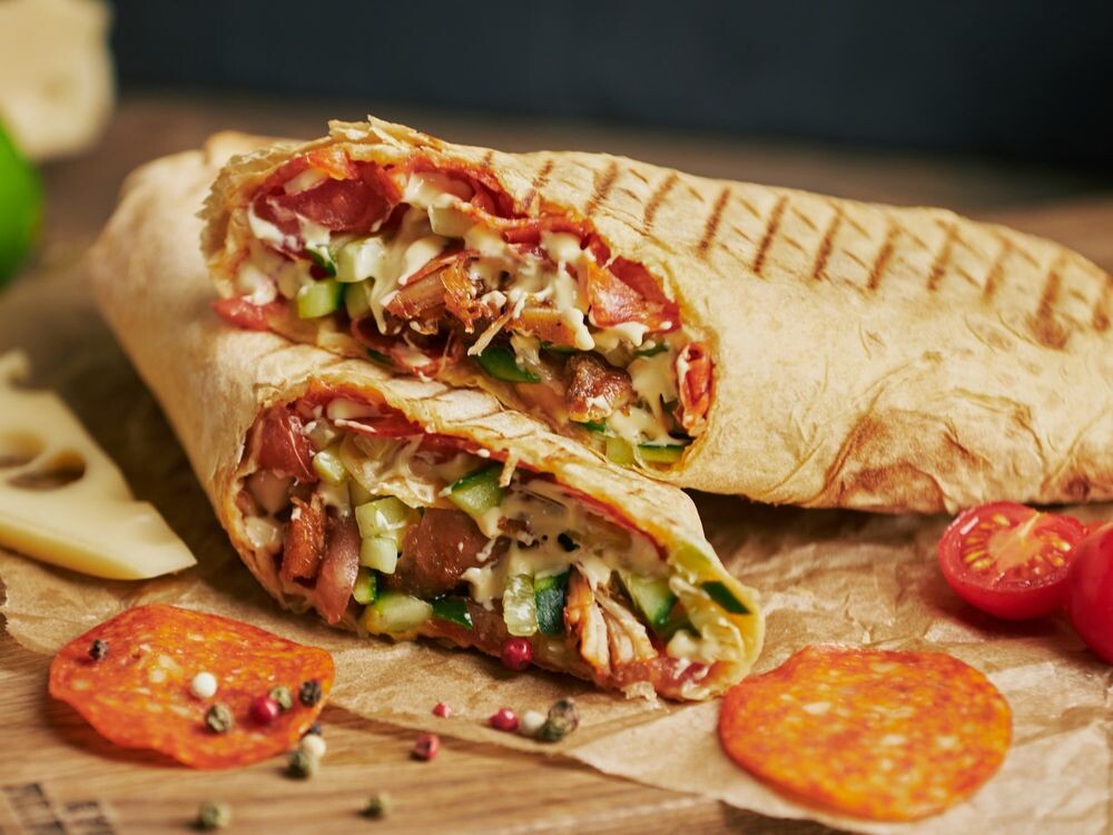 Сочная шаурма с цыпленком, пепперони и моцареллой. Хрустящие полоски картофеля фри, свежий огурец и спелый томат добавляют лёгкость и свежесть. Всё завернуто в мягкий лаваш