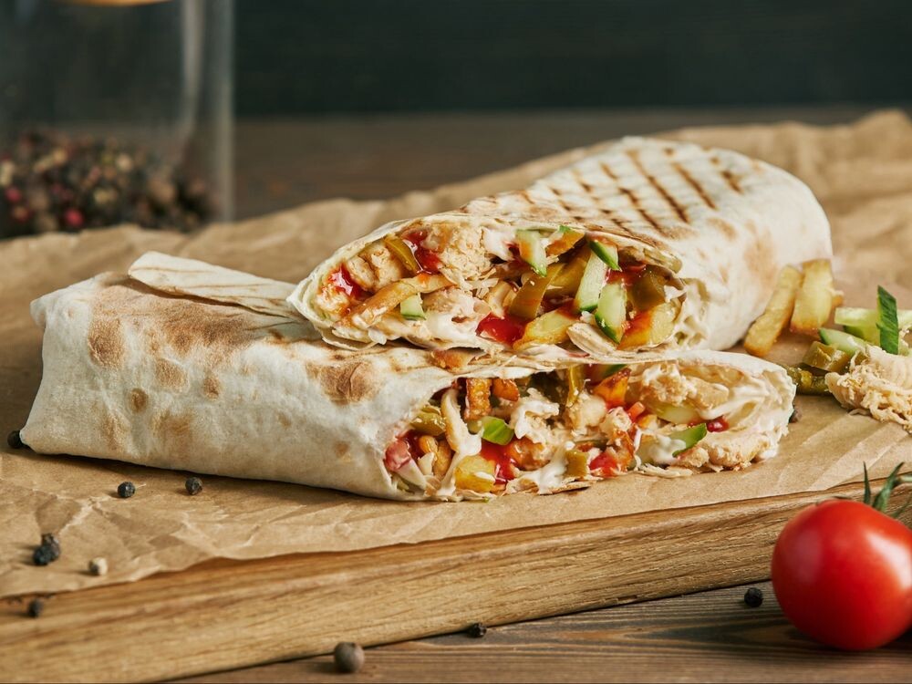 Погрузитесь в атмосферу мексиканских вкусов с нашей шаурмой, где нежное мясо цыплёнка гармонично сочетается с пикантным соусом чили и хрустящим халапеньо, а картофель фри и свежий огурец добавляют блюду неповторимые нотки