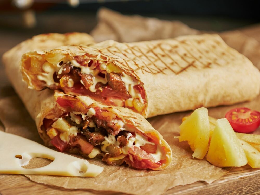 Погрузитесь в атмосферу тропического лета с нашей шаурмой, где нежный цыплёнок гармонично сочетается с сочными томатами, сладким ананасом и тягучей моцареллой, а хрустящий лаваш и картофель фри добавляют пикантности и хруста