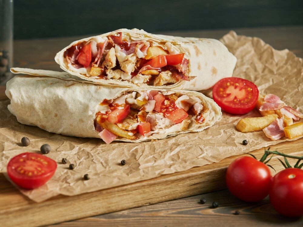 Погрузитесь в атмосферу американского юга с нашей шаурмой, где нежное мясо сочетается с хрустящим беконом и картофелем фри, а соус BBQ придаёт блюду неповторимый вкус