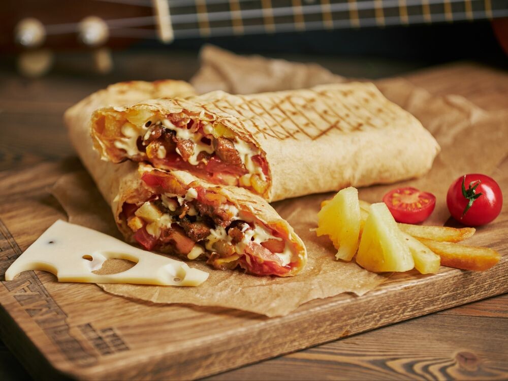Сочная шаурма с мясом цыплёнка, моцареллой и спелыми томатами. Хрустящий картофель фри и сладкий ананас придают блюду неповторимый вкус. Всё это в мягком лаваше